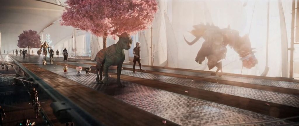 故事一開始已經明確地建立了傳統劇本典型元素 ——「彩蛋」,給電影全體角色一個目標去追尋:在 OASIS 的虛擬遊戲世界,人人為了爭奪彩蛋從而獲得遊戲設計師的豐厚遺產,紛紛闖關冒險。故事分設三個遊戲關卡,整個劇本寫法相當遵從三幕劇傳統,明顯的傳統敘事風格。這類劇情亦確實會讓人聯想起大熱日本作品《刀劍神域》(Sword Art Online),兩者有不少雷同之處,包括了大型多人連線 VR 遊戲的設定,分別在於前者以玩家的動態操控虛擬替身人偶,後者則靠玩家的大腦意念。
